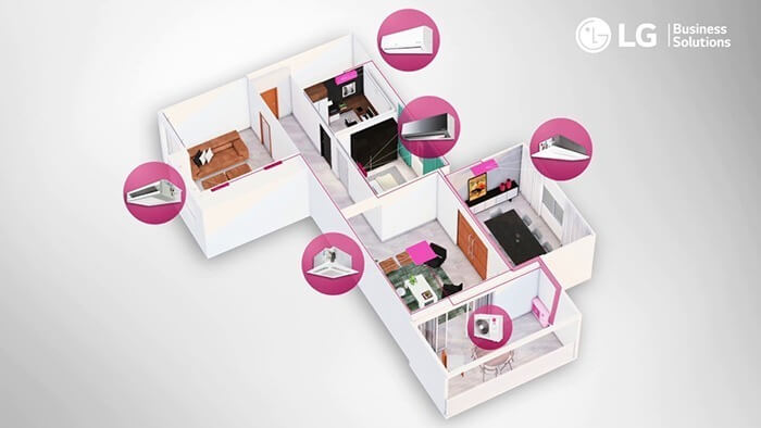 Como cada aparelho interno tem seu próprio controle remoto, podem ter temperaturas independentes, de acordo com a necessidade de conforto térmico. Também podem ser ligados todos ao mesmo tempo ou não, dependendo da sua necessidade. E, como há apenas uma condensadora, há também apenas um compressor – que como é rotativo, além de mais econômico também tem o ruído reduzido.