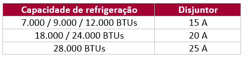 A maioria das fabricantes de ar condicionado informam a corrente elétrica consumida pelo ar condicionado, sendo esse um valor importante para saber a amperagem adequada para o disjuntor.