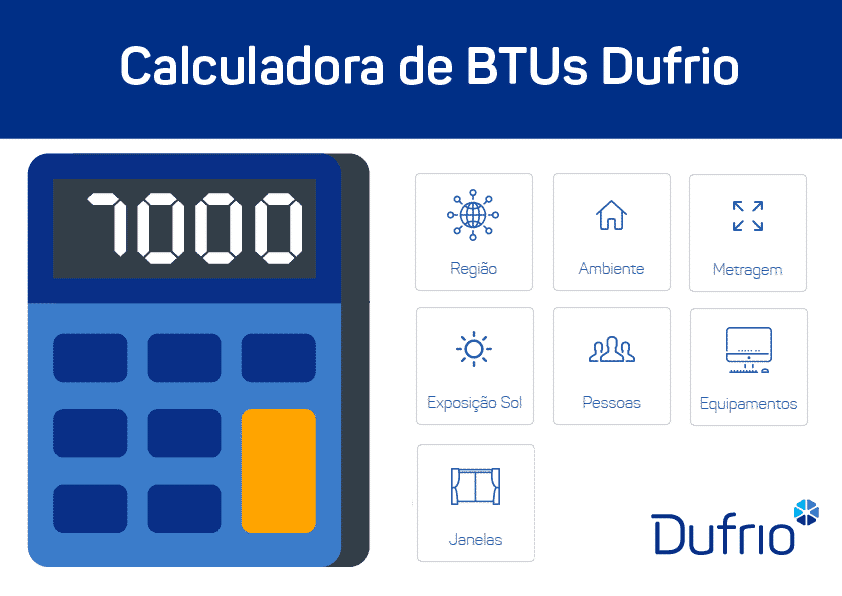 Para facilitar essa medição, a Dufrio criou uma calculadora online que permite a você escolher o modelo mais adequado para o ambiente de casa ou do escritório. Acesse agora a Calculadora de BTU/h Dufrio para acertar na escolha do aparelho de ar-condicionado.