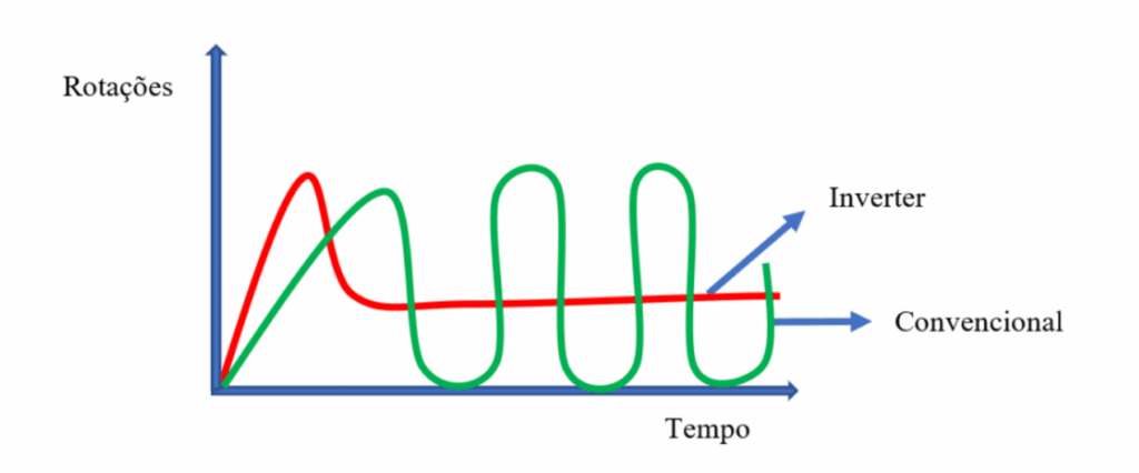 Esse ciclo de liga e desliga gera picos de consumo de energia, porque o momento de partida do motor é o que mais exige eletricidade. Além disso, cria variações na temperatura do ambiente, já que o ar-condicionado, por exemplo, pode esfriar demais antes de desligar e depois deixar o ambiente esquentar novamente até ligar de novo.